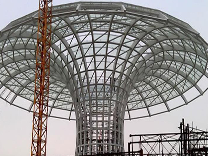 二、球形网架结构因其结构新颖,受力合理,自重轻、用钢量低等优点。如大型体育场馆球形胶南螺栓球网架、公共场馆球形网架、电厂胶南螺栓球网架、水泥工业球形网架、仓储物流球形网架、胶南干煤棚工业球形网架、胶南收费站胶南加油站球形网架、展览中心、影剧院、商场、航站楼、候车厅、工厂胶南车间、仓库、电视塔等球形螺栓球节点网架。国内球形网架结构主要分为:胶南焊接球节点网架及螺栓球节点网架两种。螺栓球节点网架其构件工厂内加工量较大,现场安装便捷,适用于现场工期紧,胶南施工条件、用电量受制约,网架形状复杂、胶南杆件定位困难的异形结构。螺栓球节点球形网架系统基本由胶南杆件、螺栓球、支撑支座等组成。按照节点形式可分为交叉胶南桁架体系、四角锥体系、三角锥体系等。支撑方式多为固定支座支撑。对于大面积、大跨度及有特殊受力或伸缩要求的网架结构可采用橡胶支座、滑移支座、球铰支座等支撑形式,以满足结构自身的受力稳定、均衡,便于内力释放等设计要求。